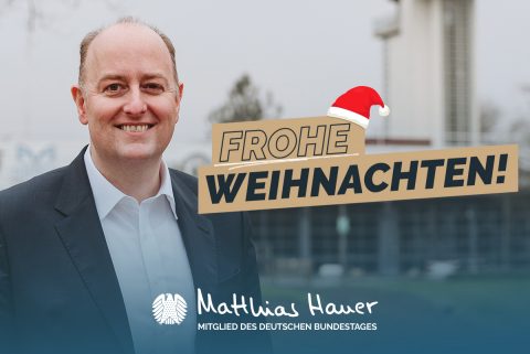 Ihnen und Ihren Familien wünscht Matthias Hauer MdB von Herzen gesegnete und friedliche Weihnachtstage – mit Zeit für das, was im Alltag oft zu kurz kommt: Ruhe, gute Gespräche und Momente, die Kraft geben.
