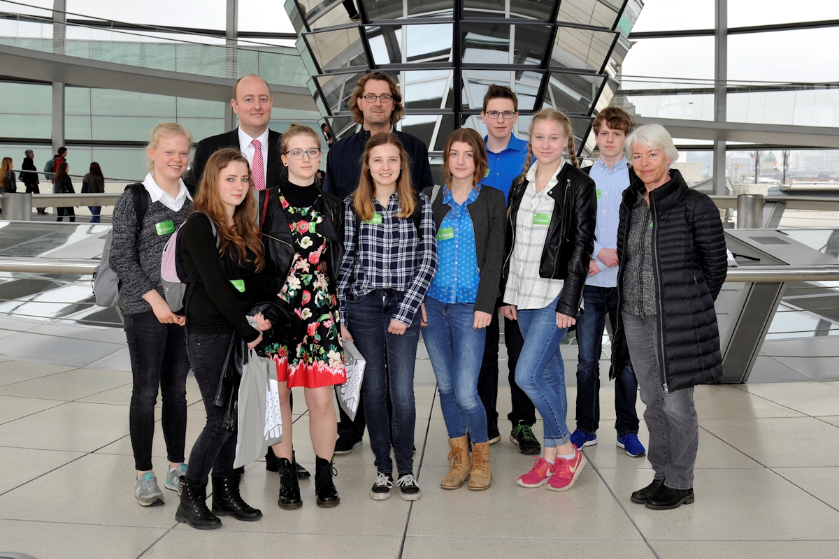 Die Schülerinnen und Schüler der Albert-Einstein-Realschule mit Matthias Hauer MdB in der Reichstagskuppel.
