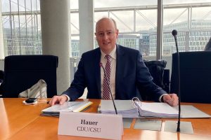 Gleich an drei Tagen haben die Mitglieder des Wirecard-Untersuchungsausschusses in dieser Woche Zeugen befragt. Das Bild zeigt Unions-Obmann Matthias Hauer MdB vor der Sitzung am Donnerstag.