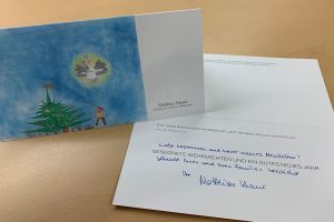 In diesem Jahr schmückt das Motiv der Drittklässlerin Josephine Wiedwald die Weihnachtskarte von Matthias Hauer MdB. Die 8-Jährige besucht die Schule an der Ruhr in Kettwig.