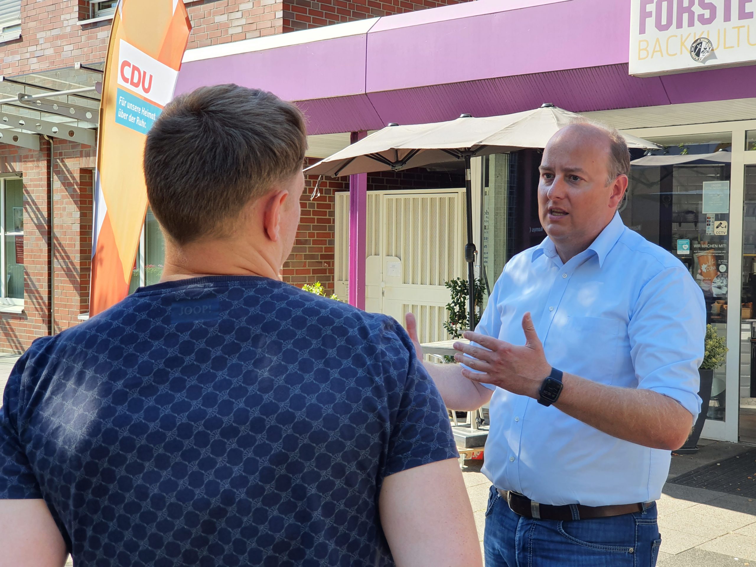 Matthias Hauer MdB im Gespräch mit einem Bürger aus Überruhr.