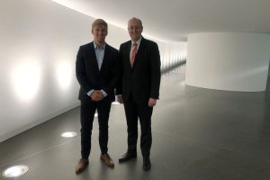 Praktikant Felix Engelhard mit Matthias Hauer MdB im Übergang zwischen Reichstagsgebäude und Paul-Löbe-Haus im Deutschen Bundestag