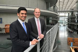 Der Essener Wirtschaftsjunior Hicham El Founti und Matthias Hauer im Paul-Löbe-Haus des Deutschen Bundestages, wo die Ausschüsse tagen.