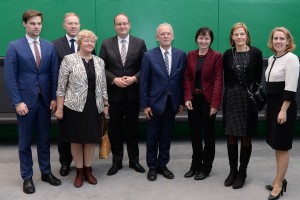 Foto: Eiki Nestor, (4.v.r.), Präsident des estnischen Parlaments, mit seiner Delegation neben Ingrid Arndt-Brauer MdB, (3.v.re), Vorsitzende des Finanzausschusses des Deutschen Bundestages, und Matthias Hauer MdB (4.v.l.)