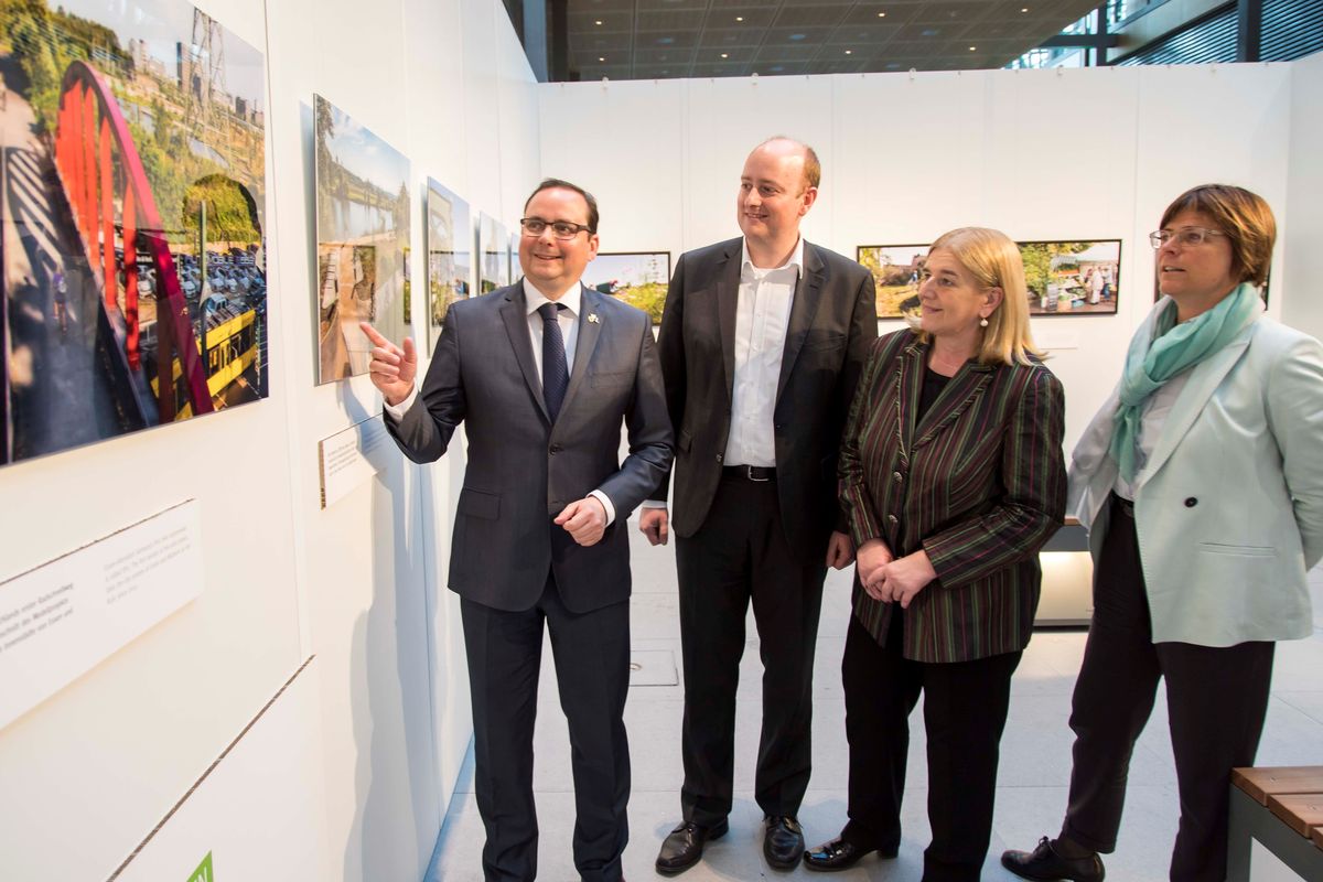 v.l.: Oberbürgermeister Thomas Kufen, Matthias Hauer MdB, Astrid Timmermann-Fechter MdB sowie Umweltdezernentin Simone Raskob in Berlin