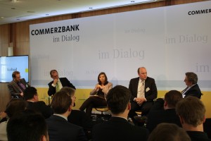 Diskussionsrunde am 19. Mai: Klaus Müller (Vorstand Verbraucherzentrale Bundesverband), Martin Zielke (Vorstand Commerzbank), Katrin Göring-Eckardt MdB (Vorsitzende der Bundestagsfraktion Bündnis 90/ Die Grünen), Matthias Hauer MdB und Hans-Peter Hagemes (Informationsdirektor von ProSiebenSat.1)