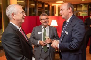 Dr. Karl-Peter Schackmann-Fallis (l.) und Helmut Schiffer (Mitte) tauschen sich mit Matthias Hauer MdB über finanzpolitische Themen aus.