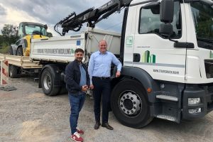 Matthias Hauer MdB und Dirk Kolacek (Geschäftsführer der Stadtgrün Ruhr GmbH) beim Besuch des Abgeordneten in dem Garten- und Landschaftsbaubetrieb am 13. August