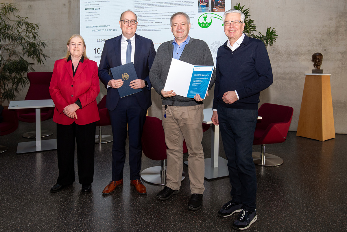 Beim Besuch des Max-Planck-Institut für Chemische Energiekonversion in Mülheim an der Ruhr hat Matthias Hauer MdB die Urkunde zur Verlängerung des Zukunftsclusters ETOS überreicht. Nach 15 Mio. Euro in der ersten Förderphase stehen nun weitere 12,1 Mio. Euro für die zweite Phase zur Verfügung. Das Bundesministerium für Forschung, Technologie und Raumfahrt setzt damit ein starkes Zeichen für die Förderung von Spitzenforschung und industrieller Innovation. Im Cluster arbeiten Spitzenforschung und Industrie eng zusammen, um elektrische Synthese vom Labor in den industriellen Maßstab zu überführen und nachhaltige sowie wettbewerbsfähige Produktionsverfahren in der Chemie zu entwickeln. Die Anschlussförderung stärkt den Forschungs- und Industriestandort Nordrhein-Westfalen nachhaltig.