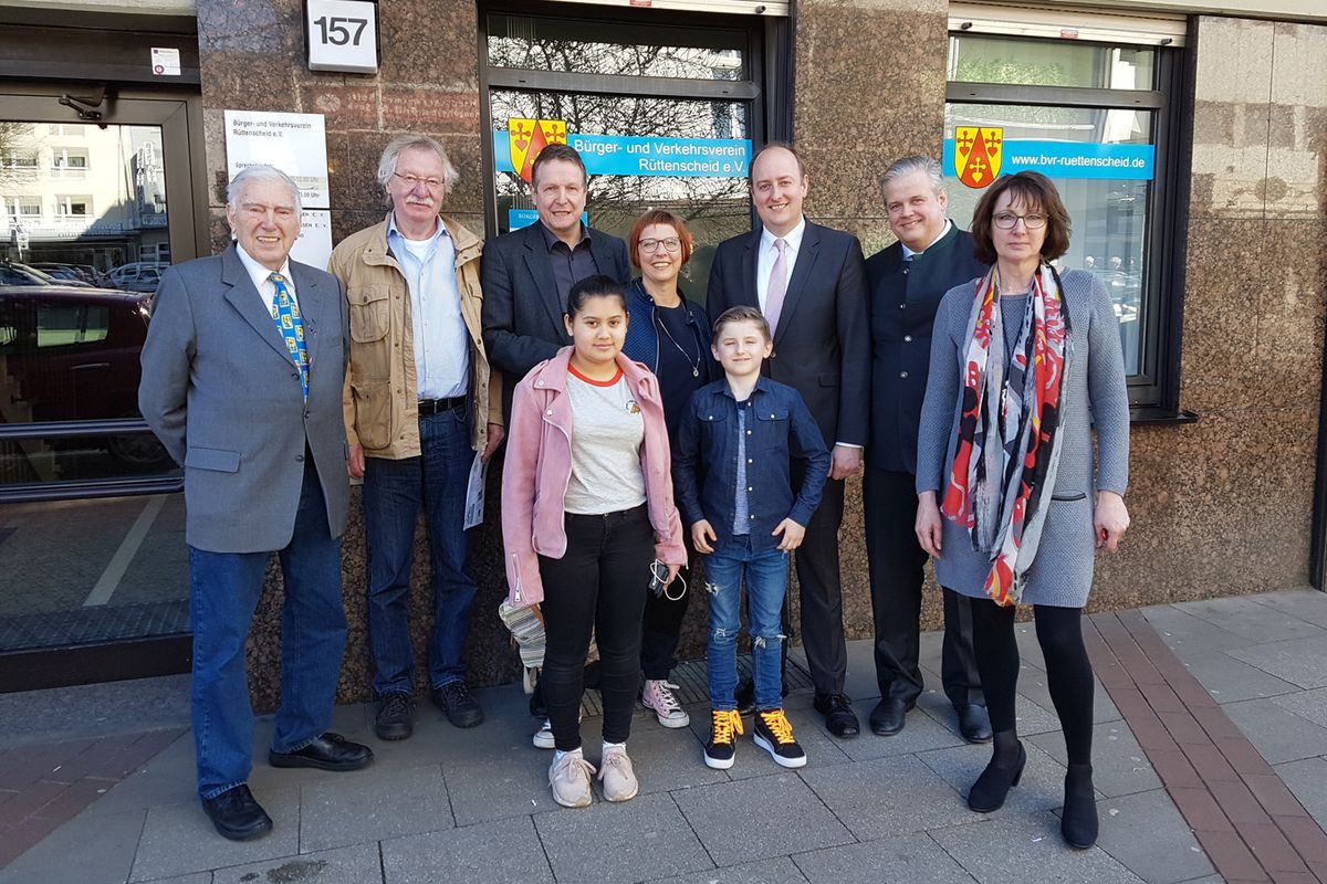 Bei der Bürgersprechstunde des Bürger- und Verkehrsverein Essen-Rüttenscheid e.V. (BVR) hat Matthias Hauer MdB am 6. April Fragen aus Kommunal- und Bundespolitik beantwortet. „Über das große Interesse habe ich mich sehr gefreut“, sagte Matthias Hauer. Aufgrund der Osterferien konnten auch einige Jugendliche beim Gespräch dabei sein – unter anderem knüpfte ein Schüler einen ersten Kontakt für ein politischen Praktikum im Bundestagsbüro von Matthias Hauer. Nach der Sprechstunde im Karl-Hohlmann-Haus ging es von dort noch gemeinsam mit Oliver Ottmann (2.v.r., 1. Vorsitzender des BVR), Gabriele Reinders (r., 2. Vorsitzende des BVR) und Ratsherrn Peter Tuppeck (3.v.l.) zum Christinenpark, um vor Ort einige kommunalpolitische Themen zu besprechen.