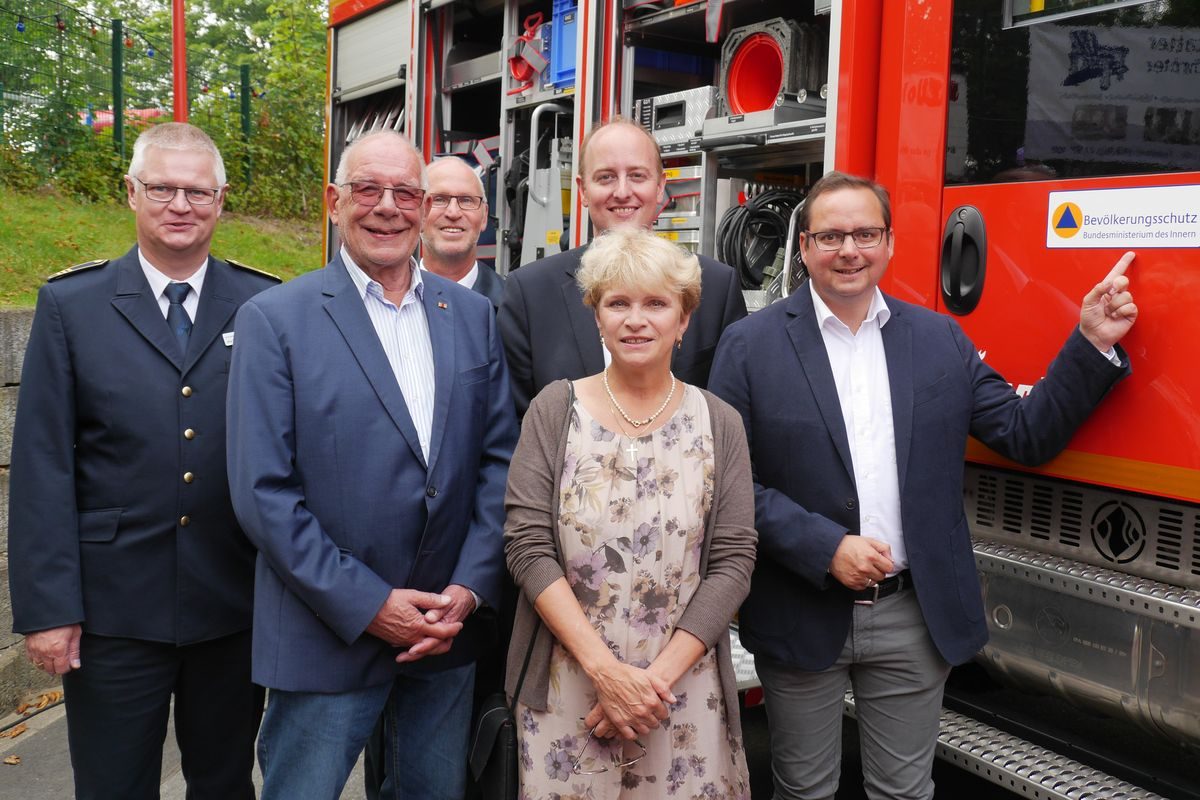 Beim Tag der Offenen Tür hat die Freiwillige Feuerwehr Burgaltendorf am 26. August ein neues Löschfahrzeug vorgeführt. Das Fahrzeug wurde vom Bundesministerium des Inneren zur Verfügung gestellt. Matthias Hauer MdB war gemeinsam mit Oberbürgermeister Thomas Kufen (r.), Bezirksbürgermeister Manfred Kuhmichel (2.v.l.) und der Burgaltendorfer Ratsfrau Walburga Isenmann vor Ort. „Unsere Feuerwehr Essen sowie die Freiwilligen Feuerwehren, die Hilfsorganisationen und die Jugendfeuerwehr sorgen für unsere Sicherheit bei Brandschutz, Rettungsdienst, technischer Hilfe und im Katastrophenschutz. Dafür haben sie auch bestmögliche Ausrüstung verdient“, betonte Matthias Hauer. Der Essener Bundestagsabgeordnete bedankte sich bei allen Haupt- und Ehrenamtlichen für ihren Einsatz bei Feuerwehr und Hilfsorganisationen.