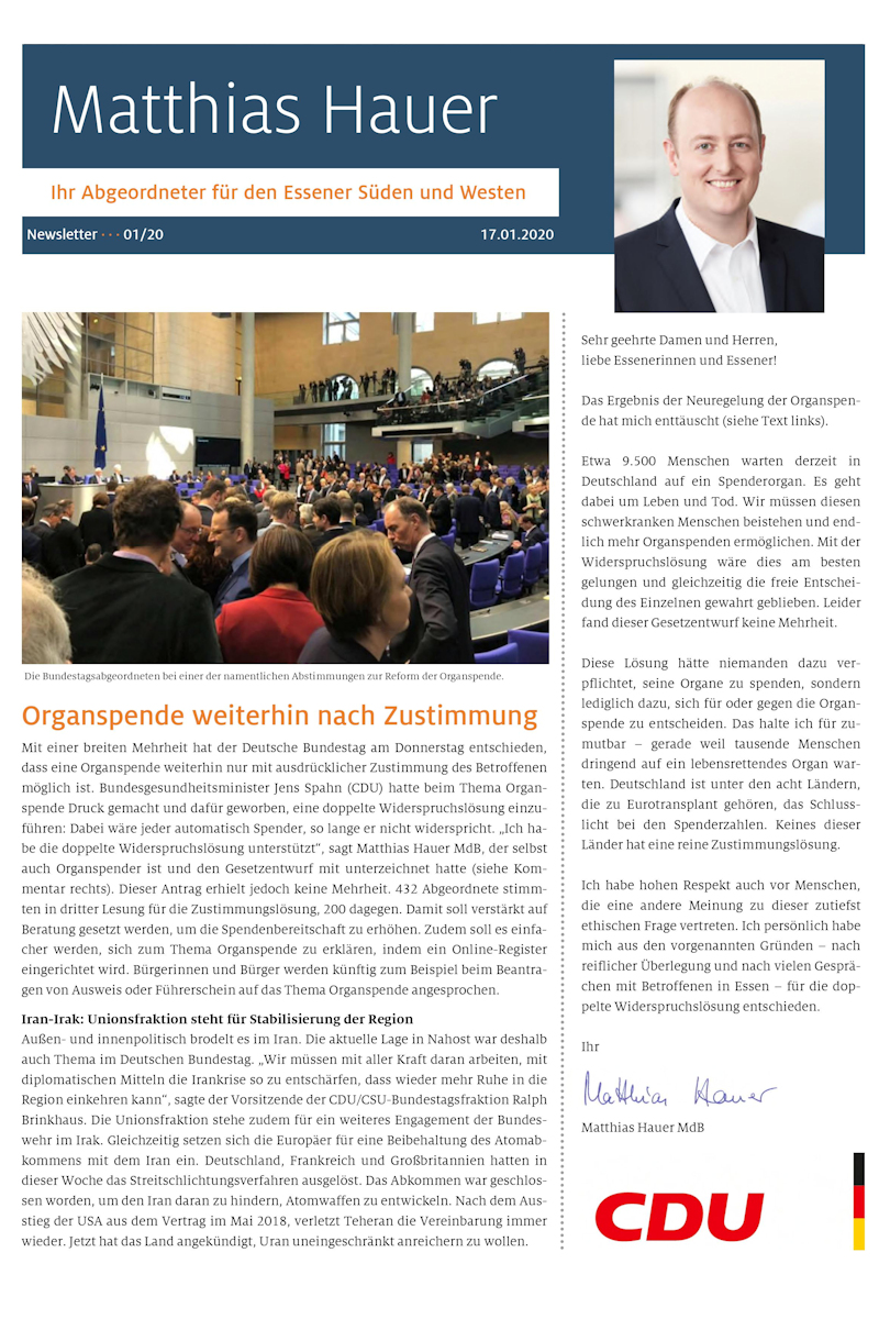 Newsletter 2020-01 Matthias Hauer MdB
