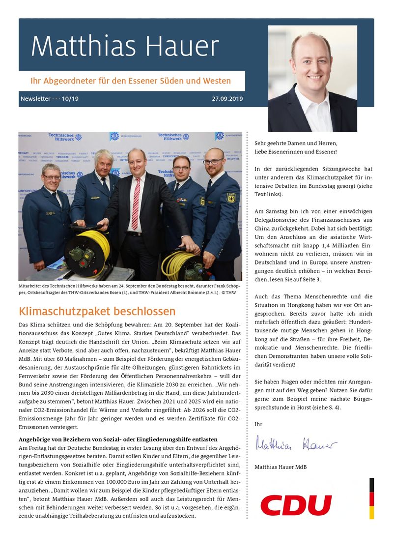 Newsletter 2019-10 Matthias Hauer MdB