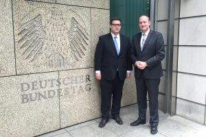 Daniel Praske und Matthias Hauer vor dem Bundestagsgebäude Unter den Linden 71. Der 22-Jährige aus Kray studiert Maschinenbau an der Universität Duisburg-Essen.