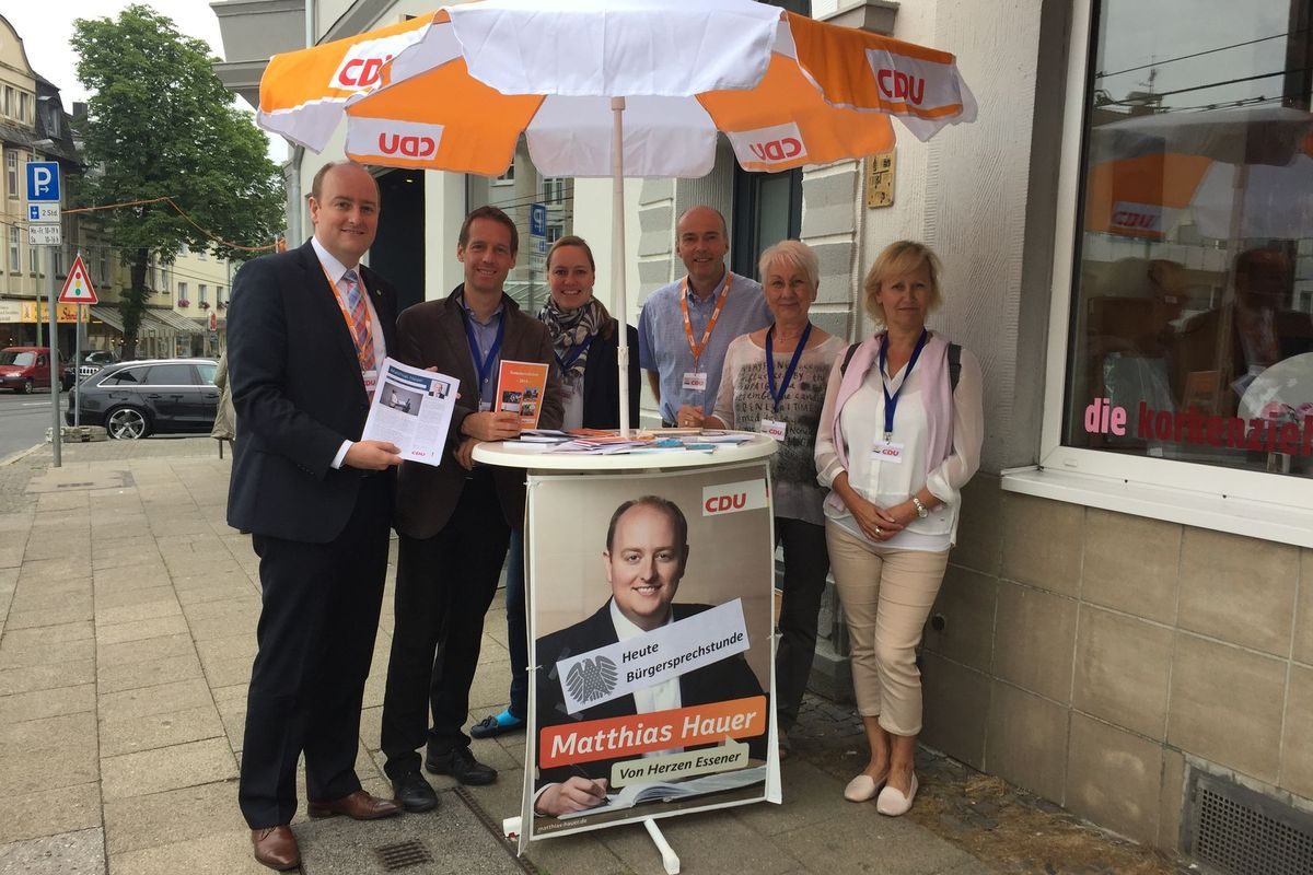 Neben Matthias Hauer werden unter anderem der örtliche Ratsherr und Essener CDU-Kandidat für die Europawahl am 26. Mai, Ulrich Beul, der Vorsitzende der CDU Bredeney, Harald Haakshorst, das Mitglied der Bezirksvertretung IX, Wolfgang Pohl, sowie weitere Aktive der CDU Bredeney als Ansprechpartner vor Ort sein.