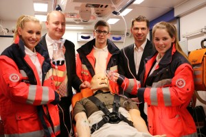 v.l.: FSJlerin Karolin Rommerswinkel, Matthias Hauer MdB, Rettungsassistent Carsten Laabs, Fabian Schrumpf sowie FSJlerin Amelie Busch