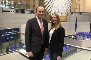 Lisa Kuhs mit Matthias Hauer MdB im Plenarsaal des Reichstagsgebäudes. Die 16-jährige Schülerin besucht die 10. Klasse der B.M.V.-Schule in Essen.