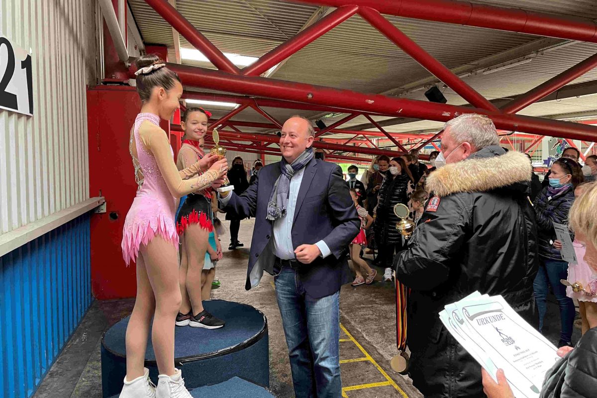 Am 9. Oktober hat Matthias Hauer MdB den Ruhr Cup 2021 in der Eisporthalle Essen-West besucht. Das jährliche Turnier wird von dem Essener Jugend-Eiskunstlauf Verein (EJE) e.V. durchgeführt. Gemeinsam mit Lisa Steinmetz (Leiterin des Landesleistungsstützpunktes), Dr. Stefan Steinmetz (1. Vorsitzender) und Adam Grabowski (2. Vorsitzender) hat der Bundestagsabgeordnete die Siegerinnen und Sieger der Kategorien U 7 bis U 10 sowie der Pre Novice Jungen und Mädchen geehrt. Aus Essen belegten Lena Alekseev in der Kategorie U 9 und Giulia Sorce in der Kategorie U 10 jeweils den zweiten Platz. Leonie Kromer erreichte in der Kategorie U 10 den sechsten Platz. In der Kategorie Pre Novice Mädchen erreichte Holly Moore Bronze. „Der Essener Jugend-Eiskunstlauf Verein hat trotz Pandemie wieder ein erfolgreiches Turnier organisiert. Die jungen Eiskunstläuferinnen und Eiskunstläufer haben mit ihren Sprüngen und Pirouetten großartige Leistungen bewiesen“, so der Essener Abgeordnete. In diesem Jahr nahmen insgesamt 83 junge Sportlerinnen und Sportler aus ganz Deutschland an den Wettkämpfen teil.