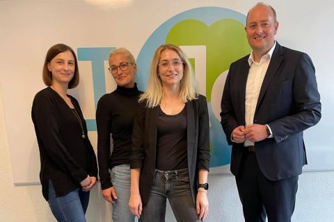 Die beiden Gründerinnen der „I do“-App, Birke Benzke (2.v.l.) und Lisa Prokasky (2.v.r.) sowie ihre Assistentin Katrin Ciualla traf der Abgeordnete am 10. August in Rüttenscheid.