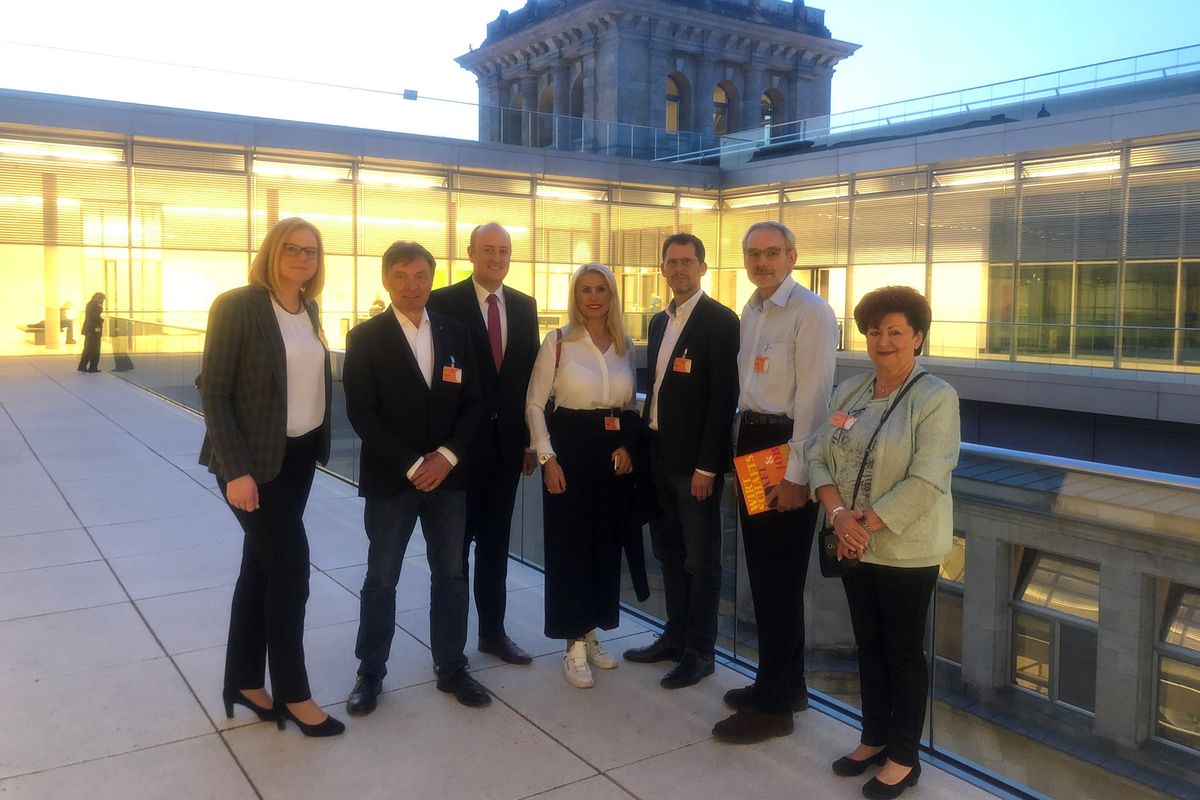 Der Essener Vorstand der DEHOGA (Deutscher Hotel- und Gaststättenverband e.V.) hat am 16. Oktober Matthias Hauer MdB im Deutschen Bundestag besucht. Auf die Führung durch einige Gebäude im Regierungsviertel folgte der Besuch auf der Dachterrasse des Reichstagsgebäudes. Im Austausch mit dem Essener Bundestagsabgeordneten sprachen die Vertreterinnen und Vertretern des Essener Hotellerie- und Gaststättengewerbes vor allem Themen an, die für ihre tägliche Arbeit wichtig sind. Groß war ihr Interesse vor allem an der Flexibilisierung des Arbeitsrechtes, der Bewältigung des Fachkräftemangels sowie der Integration von Migranten in den Arbeitsmarkt. „Über den Besuch des Essener DEHOGA-Vorstands habe ich mich sehr gefreut! Die Branche ist ein wichtiger Wirtschaftsfaktor und Arbeitgeber“, resümiert der Bundestagsabgeordnete. „Wir bleiben im Gespräch – nächstes Mal in Essen!“ Die Delegation