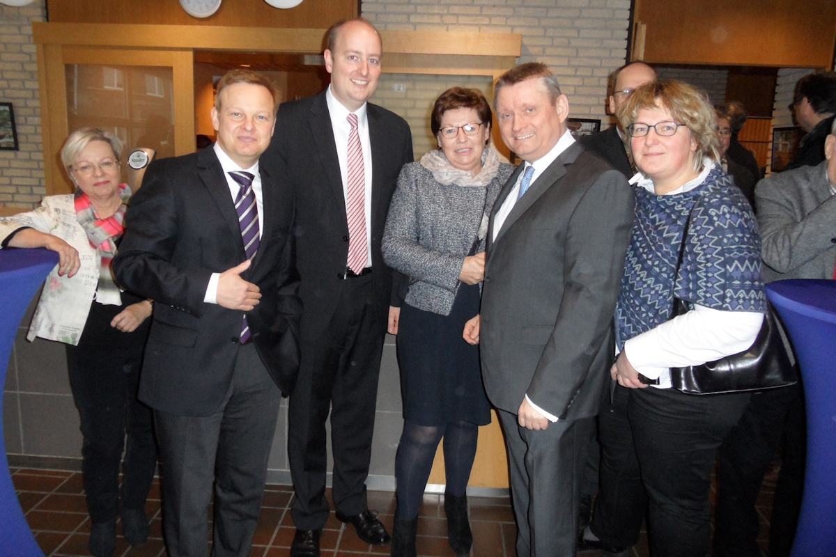 v.l.: Dagmar Rode, Dirk Kalweit, Matthias Hauer MdB, Jutta Eckenbach MdB, Bundesminister Hermann Gröhe und Kirsten Kalweit