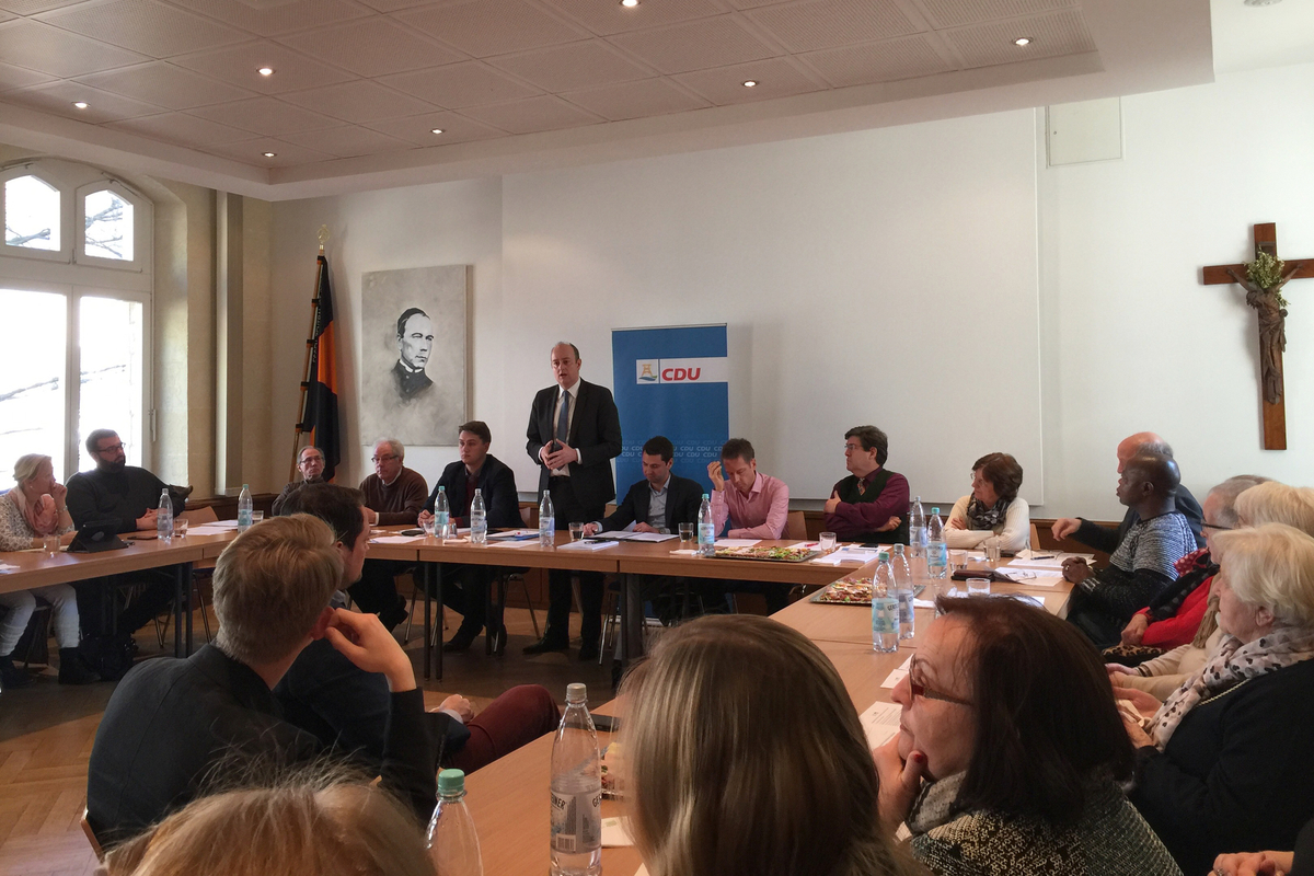 Was spricht für den Koalitionsvertrag und was dagegen? Wo konnte sich die Union durchsetzen und wo die SPD? Drei Stunden hat Matthias Hauer MdB mit Mitgliedern der CDU Essen am 24. Februar über den Koalitionsvertrag diskutiert. Knapp 50 Mitglieder nutzten das Angebot zum Austausch. Nach einer Einführung durch Matthias Hauer wurden Inhalte und Alternativen zur großen Koalition – durchaus auch kontrovers – debattiert. „Das Stimmungsbild der Teilnehmer war am Ende aber eindeutig: Die Essener Delegierten sollten beim Bundesparteitag am 26. März dem Koalitionsvertrag zustimmen – so entschieden sich über 40 der Anwesenden, bei einer Gegenstimme und vier Enthaltungen“, berichtet Matthias Hauer.