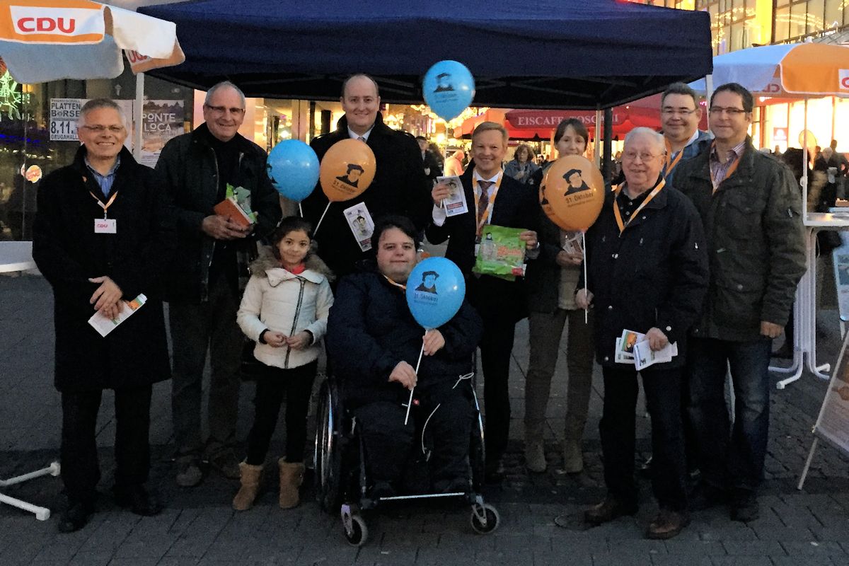 Mit Luther-Bonbons und Informationen über Reformation und Lutherdekade war Matthias Hauer MdB einen Tag vor dem Reformationstag mit dem Evangelischen Arbeitskreis der CDU Essen in der Innenstadt präsent und informierte Bürgerinnen und Bürger. Am 31. Oktober besuchte der Essener Bundestagsabgeordnete zudem die Essener Reformationsfeier in der Erlöserkirche. Der Gottesdienst fand unter der liturgischen Leitung von Superintendentin Marion Greve, Assessorin Erika Meier und Skriba Heiner Mausehund statt. Die Kollekte kam dem Verein „Medica Mondiale“ zugute, der sich für traumatisierte Frauen und Mädchen in Kriegs- und Krisengebieten einsetzt.