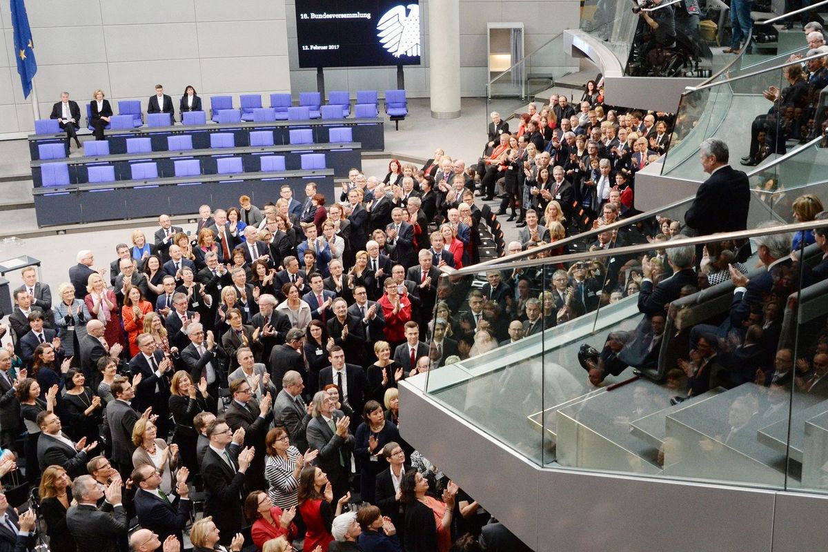 Die Bundesversammlung applaudiert dem scheidenden Bundespräsidenten Joachim Gauck. Am 12. Februar haben die Mitglieder – darunter auch Matthias Hauer MdB – mit einer klaren Mehrheit Frank-Walter Steinmeier zum neuen Bundespräsidenten gewählt. © Deutscher Bundestag, Achim Melde