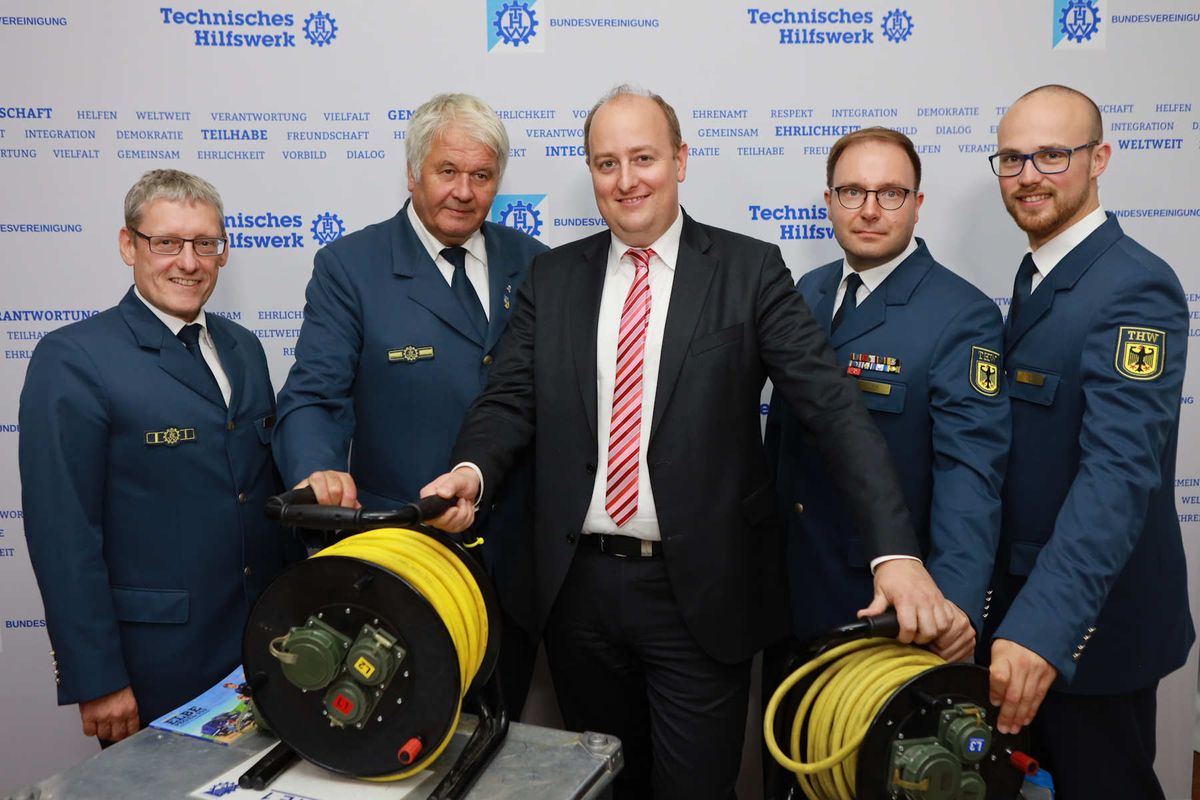 Mitarbeiter des Technischen Hilfswerks haben am 24. September den Bundestag besucht, darunter Frank Schöpper, Ortsbeauftragter des THW-Ortsverbandes Essen (l.), und THW-Präsident Albrecht Brömme (2.v.l.). © THW