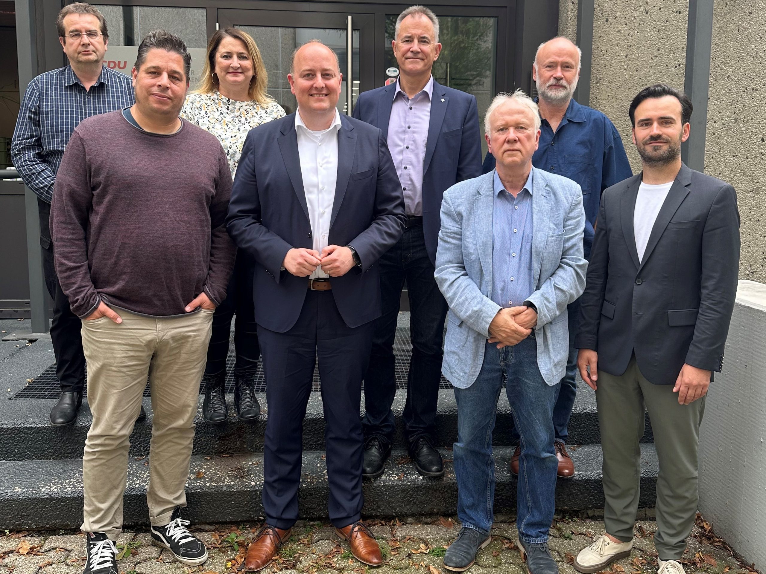 Matthias Hauer MdB mit Vertretern von AWO, Caritas-SkF-Essen (CSE), Diakoniewerk, JMD, PlanB und Verein zur interkulturellen Beratung und Betreuung (VIBB).