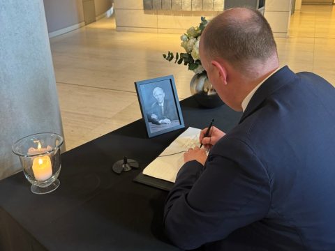 Matthias Hauer MdB trägt sich in das Kondolenzbuch im Deutschen Bundestag ein.