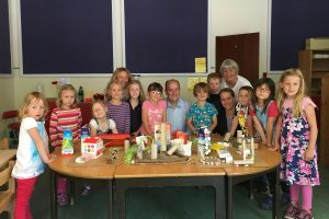 Die Kinder präsentieren das fertige Spielplatz-Modell.